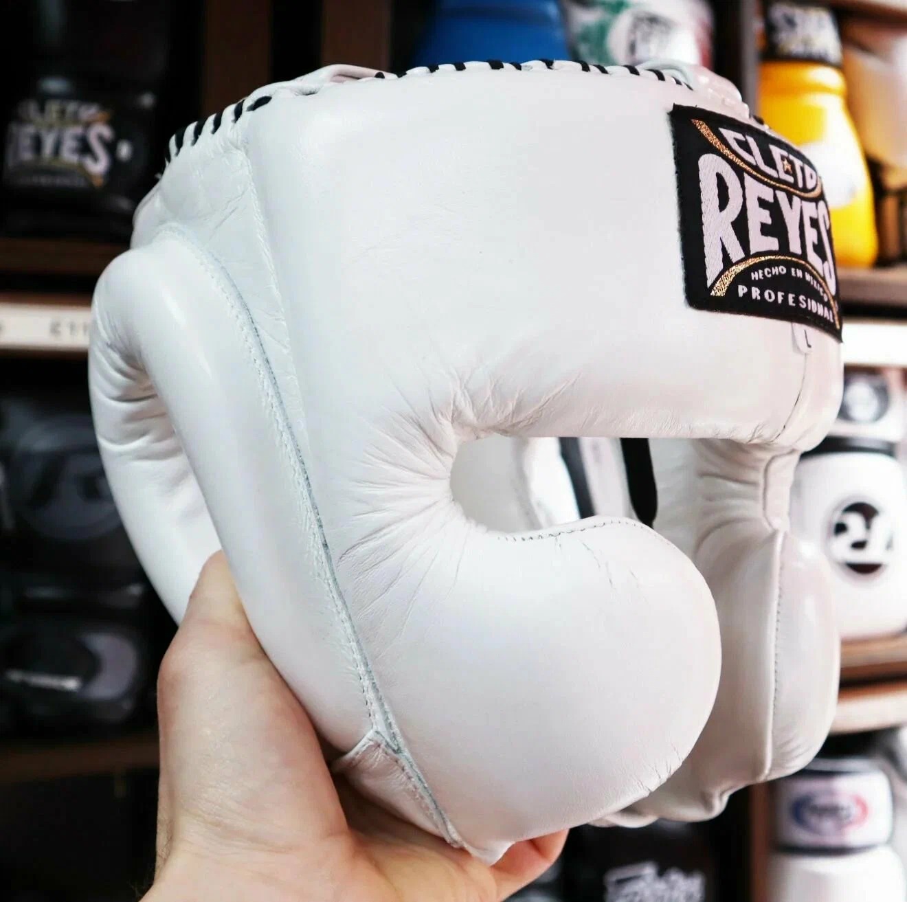 CLETO REYES, CE382N, Шлем тренировочный, с защитой щёк, размер L, белый , кожа