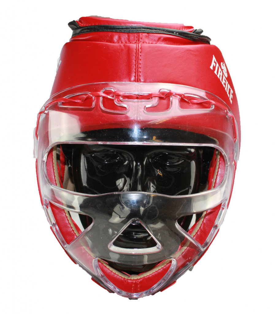 Шлем боксерский с пластиковым забралом FIREICE, закрытый, красный, Flex