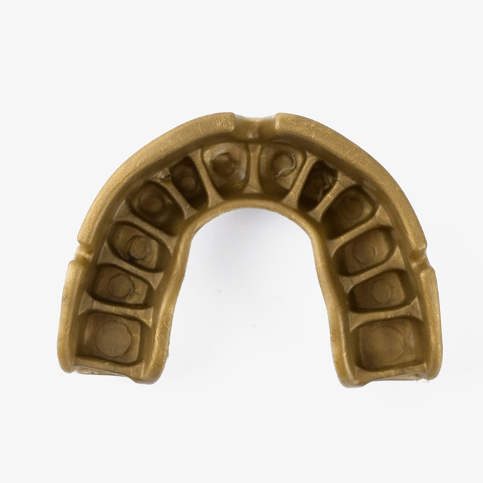 Улучшенная конструкция: дополнительные ребра в конструкции капы обеспечивают оптимальную посадку на зубах с учетом анатомических особенностей челюсти. Так же специалисты из OPRO в капах уровня Gold увеличили гелевый слой для ещё бОльшей безопасности зубов.