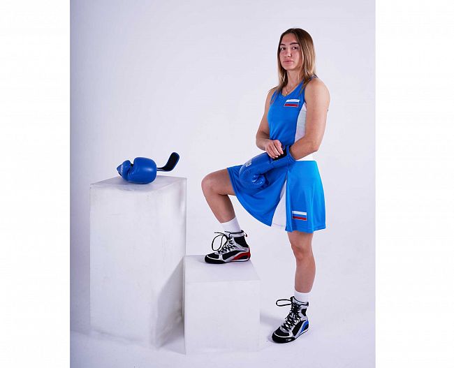 Комплект женской боксерской формы Clinch Fight с инициалами Федерации Бокса России.