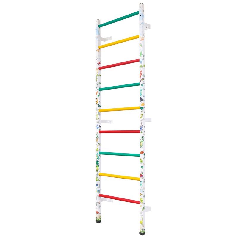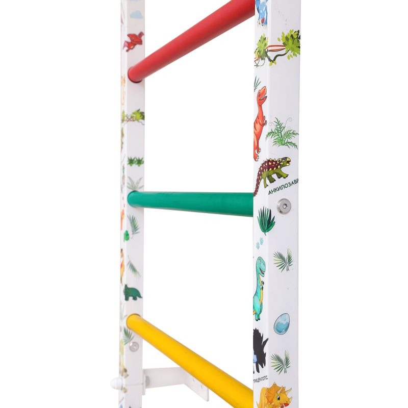 Детская шведская стенка АТЛЕТ (3 части) (Цвет: ДИНОЗАВРЫ, цвет ступеней:"светофор")