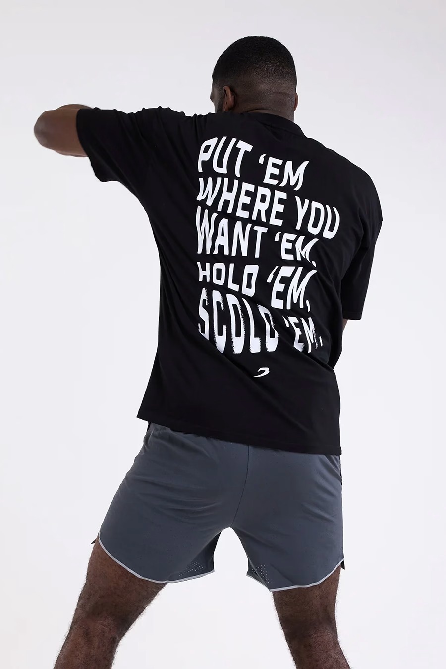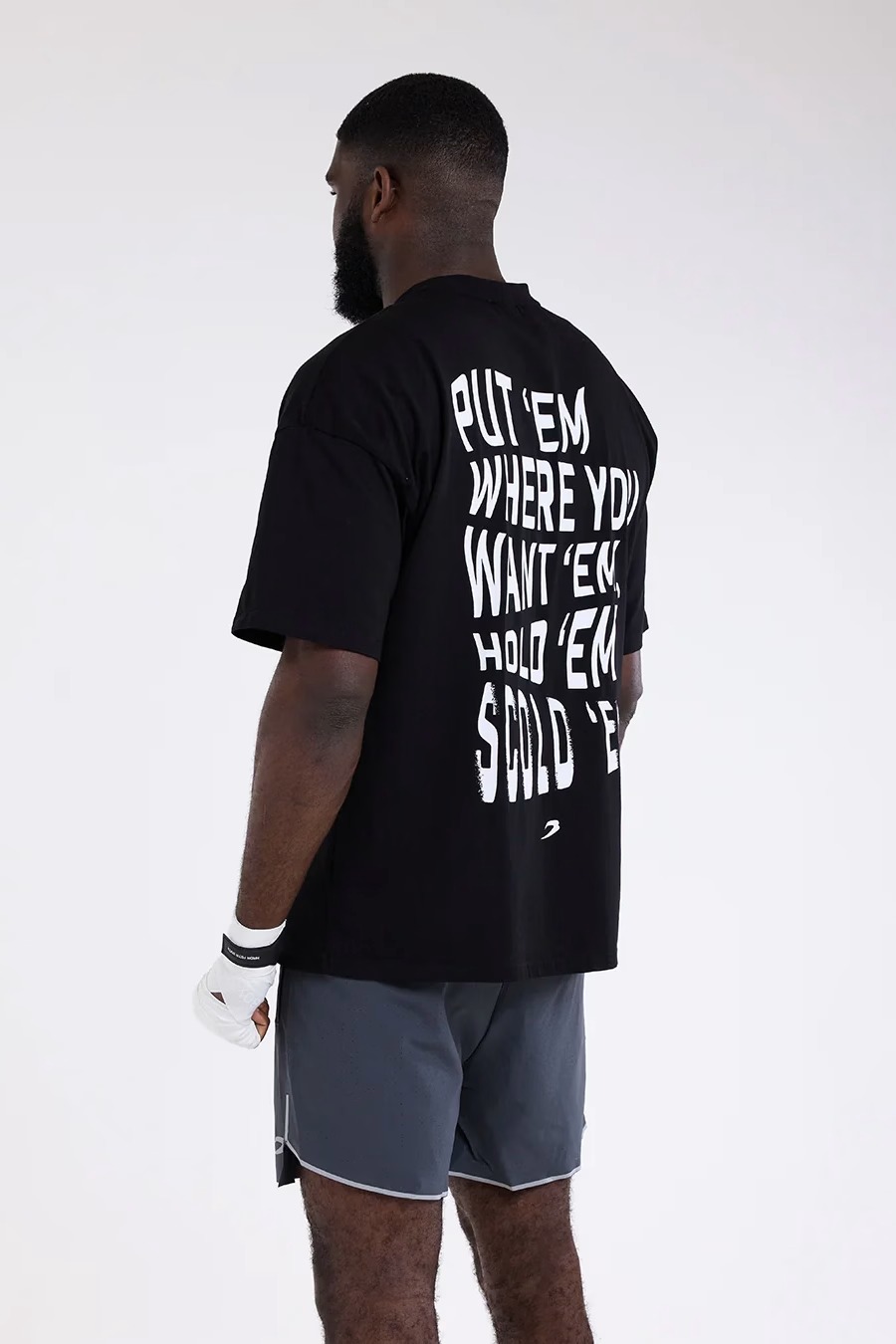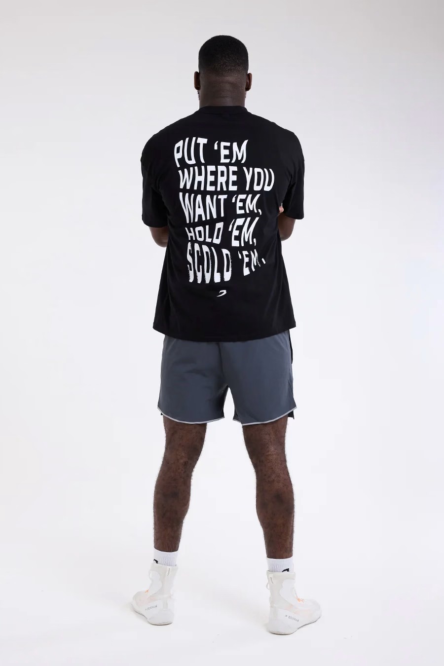 Просторная футболка из эластичного хлопка идеально сочетает воздухопроницаемость, комфорт и свободу движений, чтобы вы чувствовали себя уверенно раунд за раундом. Эта футболка со слоганом «Put ‘ Em Where you want ‘Em, Hold ’Em, Scrold ’Em» на спине воплощает менталитет ринга: тотальный контроль. Когда ты на ринге, у тебя есть одна цель — поставить их на место, держать и наказывать.