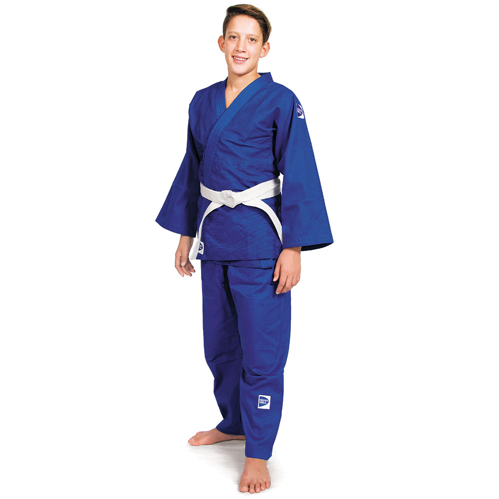Оригинальное дзюдоги GREEN HILL для дзюдо CLUB предназначено для тренировок спортсменов, уже знакомых с дзюдо. Куртка из 100% хлопка имеет плотность 475г/м2. Плечи и проймы усилены многократной сшивкой и дополнительным слоем ткани. Брюки с эластичной резинкой и завязками выполнены из комбинации 65% хлопка и 35% полиэстера и имеют плотность 180г/м2. На коленях брюк имеются усиления для защиты от износа.