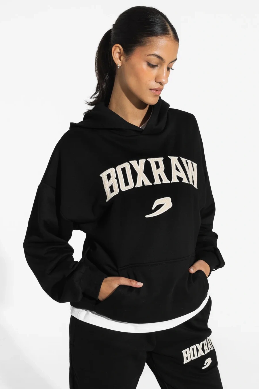 Вдохновленная эстетикой классического бокса, толстовка East Street Hoodie в своем дизайне отдает дань корням. Она выполнена в свободном фасоне из прочной хлопковой смеси, и будет служить вам долгие годы, не теряя в качестве. Грудь украшена аппликацией логотипа Boxraw, на спине расположена традиционная для бренда небольшая металлическая пластина. А если поднять руки в стойке, то вы увидите перевернутые логотипы Boxraw. Для хранения ценных вещей мы добавили наш фирменный карман на молнии внутри кармана-кенгуру.