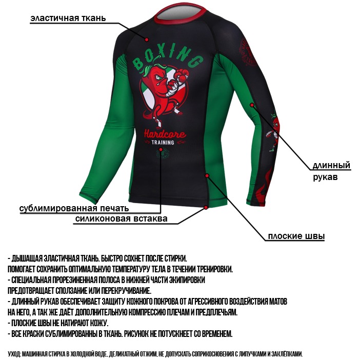 Основные качественные характеристики рашгарда Hardcore Training: